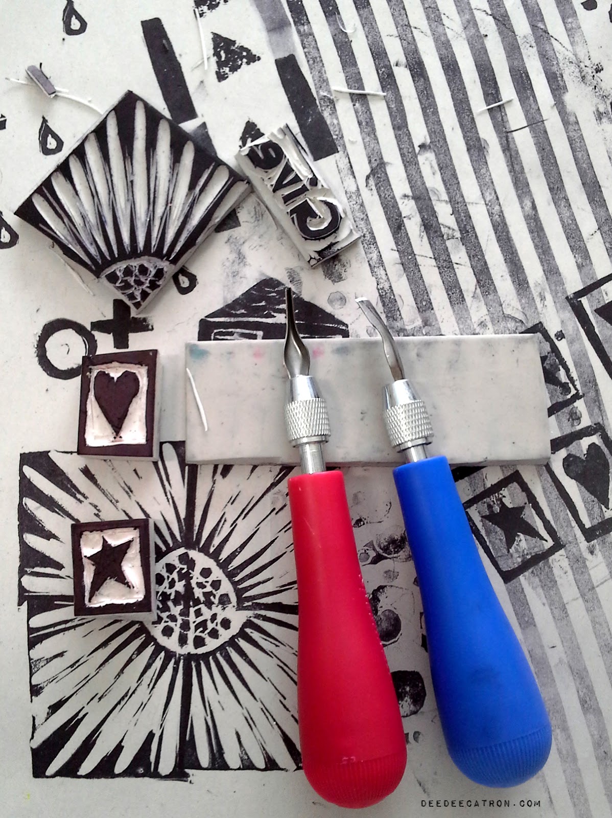 The first class in May we concentrated on making stamps!! We did a bit of stamp cutting and carving out of different materials.